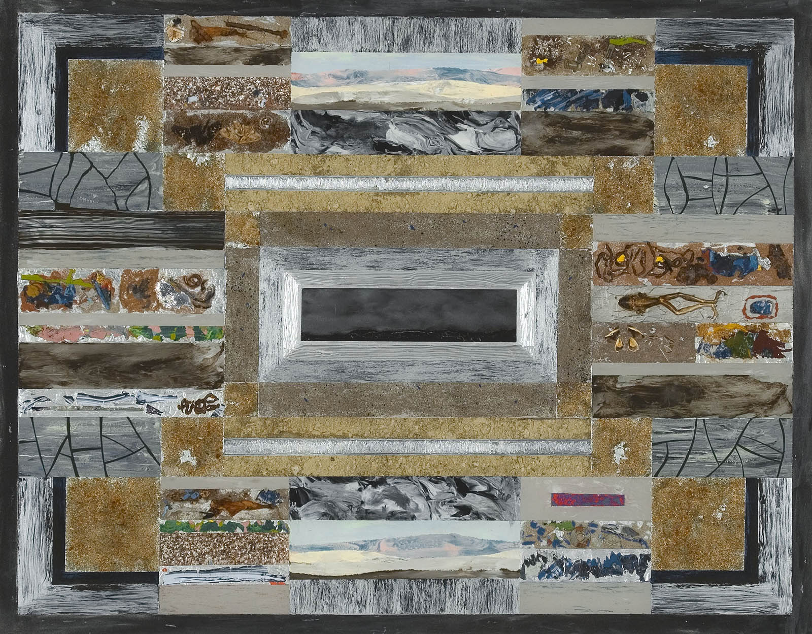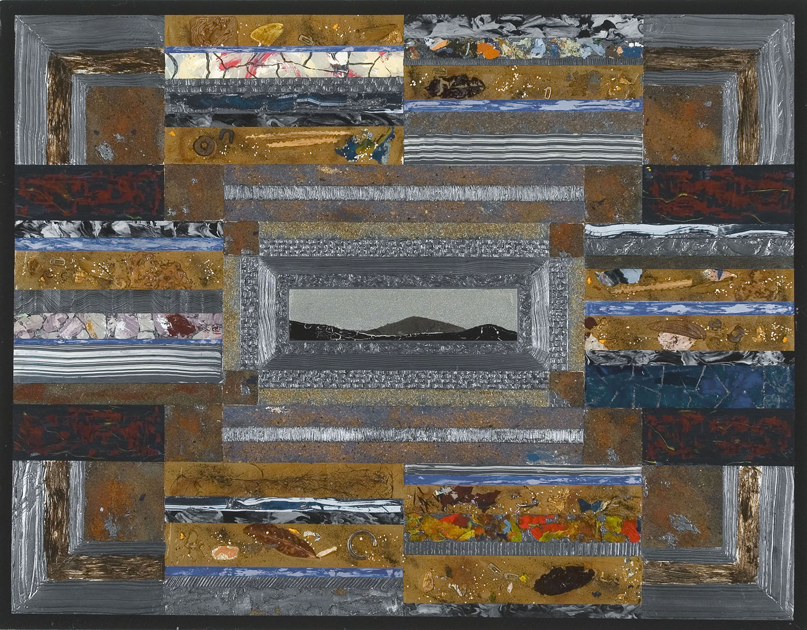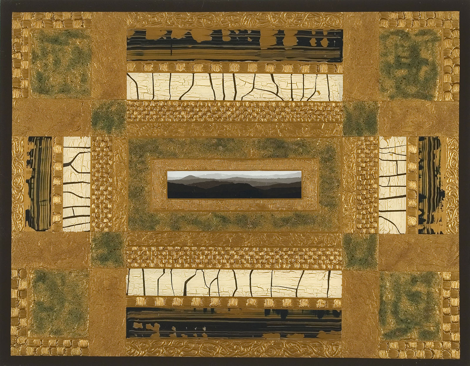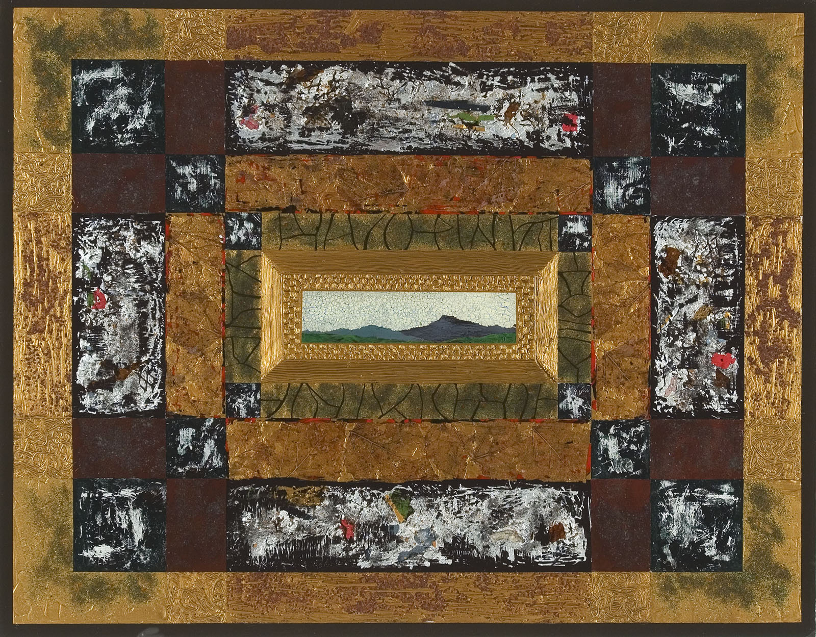 Ten paintings, done during a six-month stay in 2005 on a fazenda (ranch) in central Brazil. All are 21 ⅝” x 27 ⅝”, or 55 x 70 cms, on ⅛” acrylic sheet, backed by canvas, and mounted on wooden supports. This is special set of paintings for me. The seclusion allowed concentration, and pushed me to a new level, consolidating diverse concepts into a cohesive series. They bring back to my mind walking the fields with the nine dogs, encountering ant-eaters and aardvarks, termite mounds taller than me, crazy winter thunderstorms and indescribable cloudscapes. Viewers will not remark, “That is Brazil!”, but there is something of the soil present… in fact, tailings from ant colonies provided pigment for several of the pieces, as do clays from the streams, leaves, found objects, a feather from Joaninia the parrot, and even a long-legged frog.