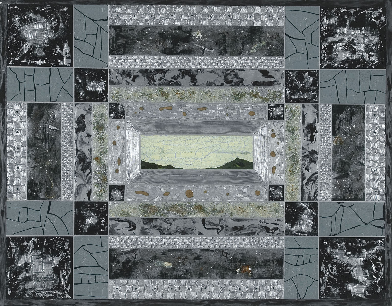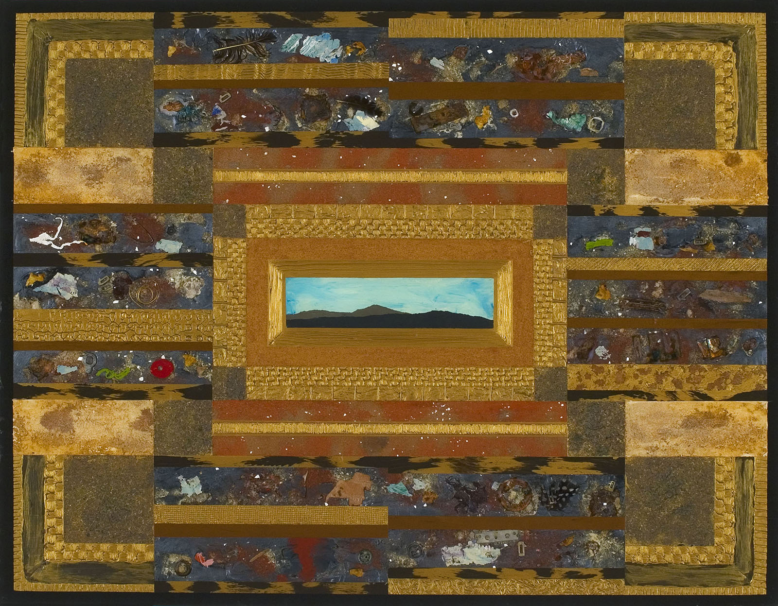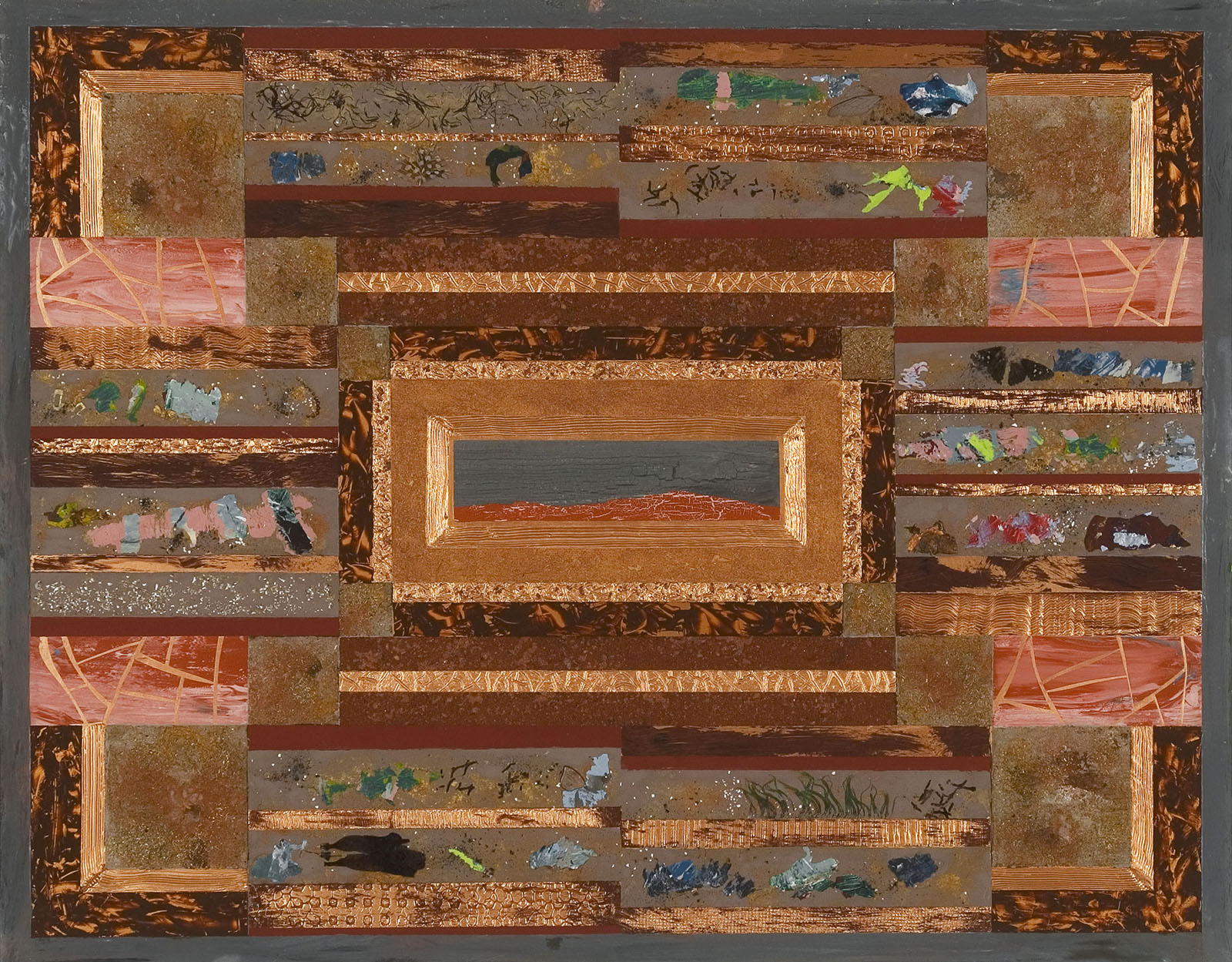 Ten paintings, done during a six-month stay in 2005 on a fazenda (ranch) in central Brazil. All are 21 ⅝” x 27 ⅝”, or 55 x 70 cms, on ⅛” acrylic sheet, backed by canvas, and mounted on wooden supports. This is special set of paintings for me. The seclusion allowed concentration, and pushed me to a new level, consolidating diverse concepts into a cohesive series. They bring back to my mind walking the fields with the nine dogs, encountering ant-eaters and aardvarks, termite mounds taller than me, crazy winter thunderstorms and indescribable cloudscapes. Viewers will not remark, “That is Brazil!”, but there is something of the soil present… in fact, tailings from ant colonies provided pigment for several of the pieces, as do clays from the streams, leaves, found objects, a feather from Joaninia the parrot, and even a long-legged frog.